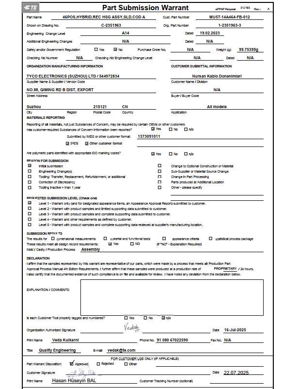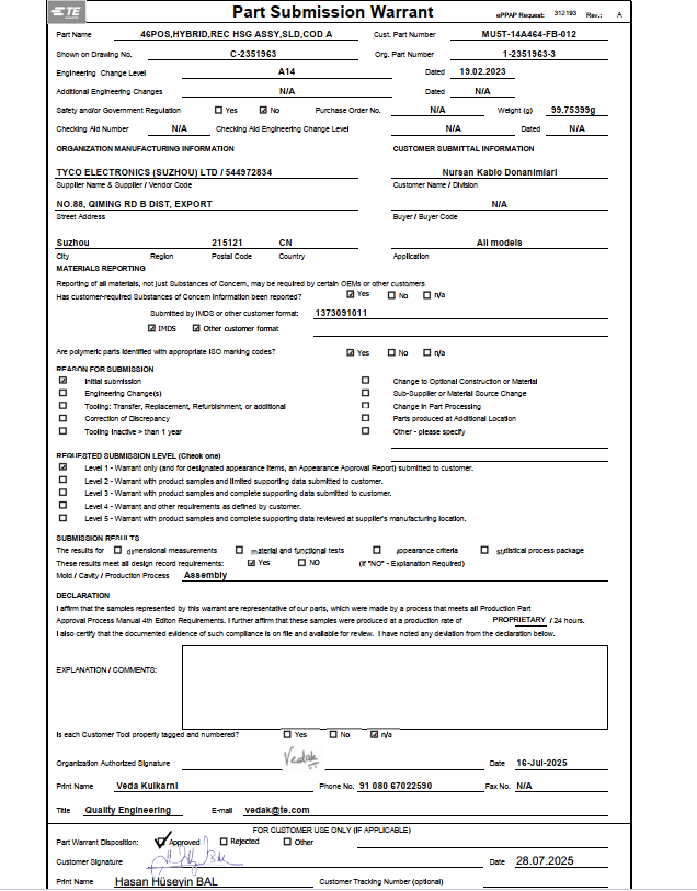 | 3819 | 1-2351963-4 PSW | PPAP Level 2 | MU5T-14A464-FB-013 | - | Одобрен | 09.12.2025 16:09 | hahmedova@nursanbulgaria.com | 1-2351963-4 PSW.pdf | |